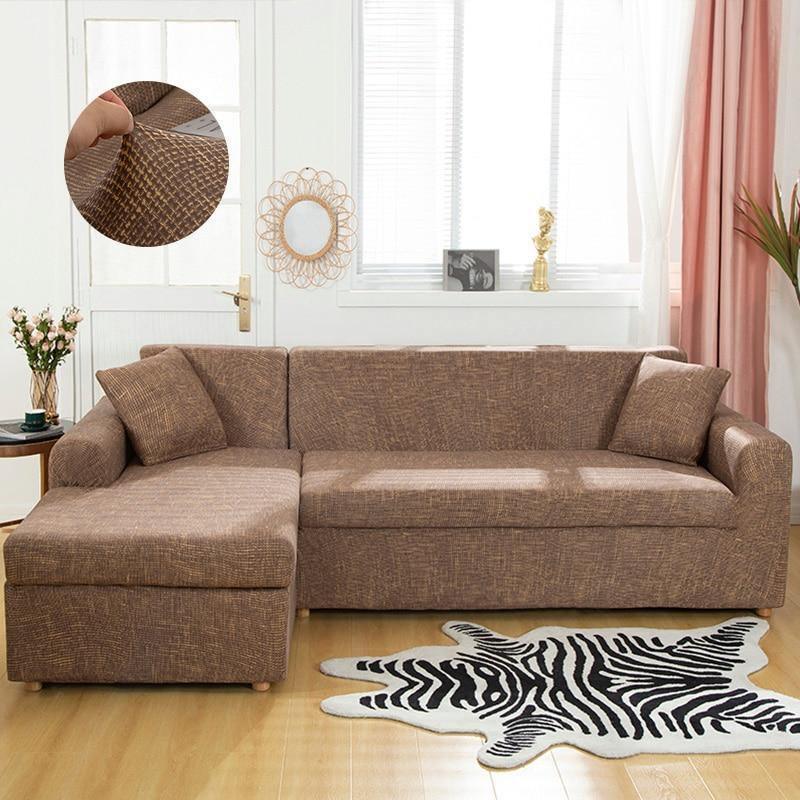 Refresh and protect your sectional with the Spotted Pattern Brown-gold Corner Sofa Cover.